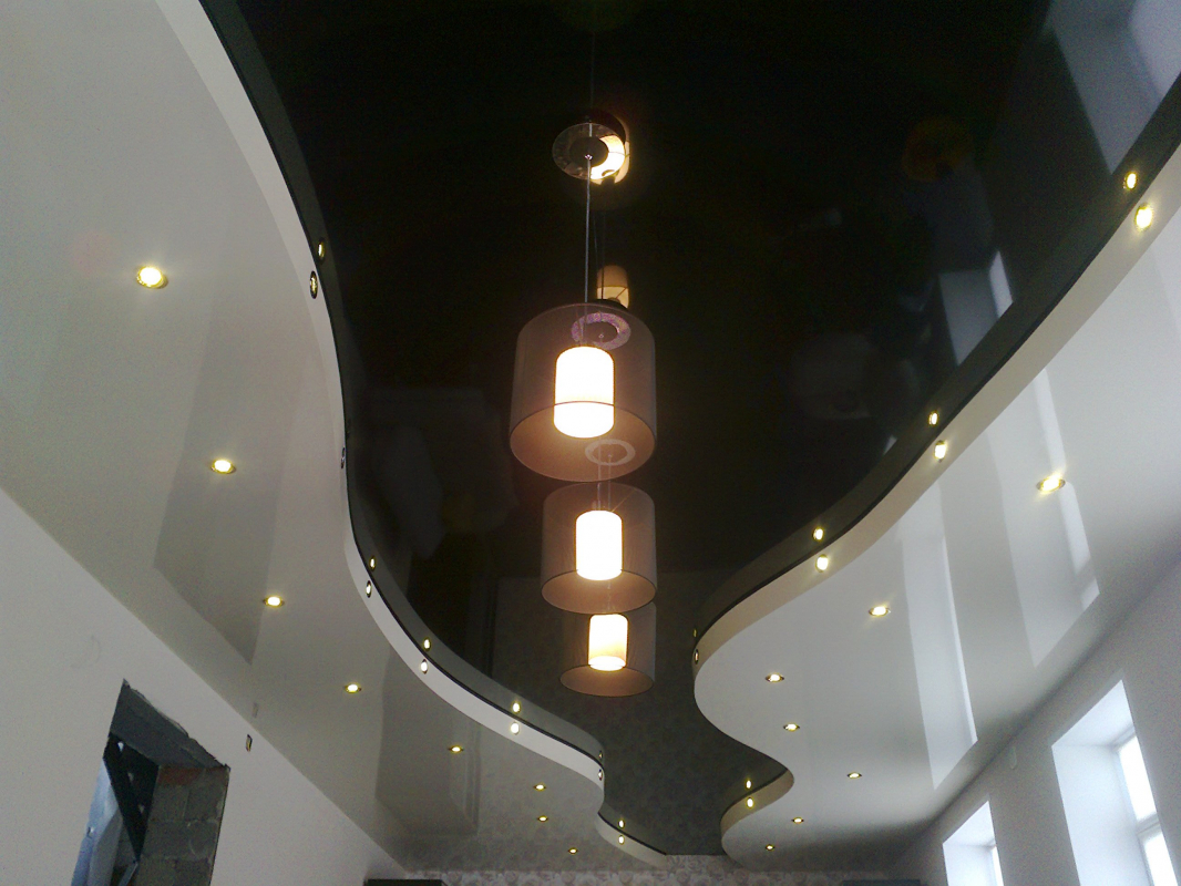Натяжные потолки в два уровня с кривой линией