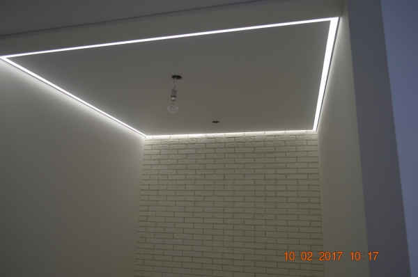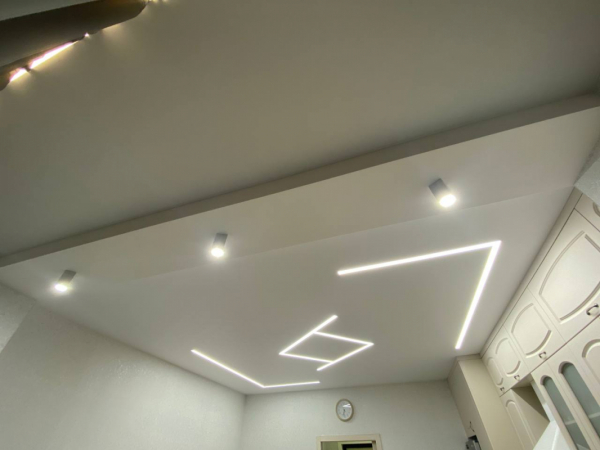 - Количество и тип осветительных приборов. Компания, устанавливая потолки под ключ, в цену включает подведение проводов, подготовку полотна к монтажу осветительных приборов, собственно установку.